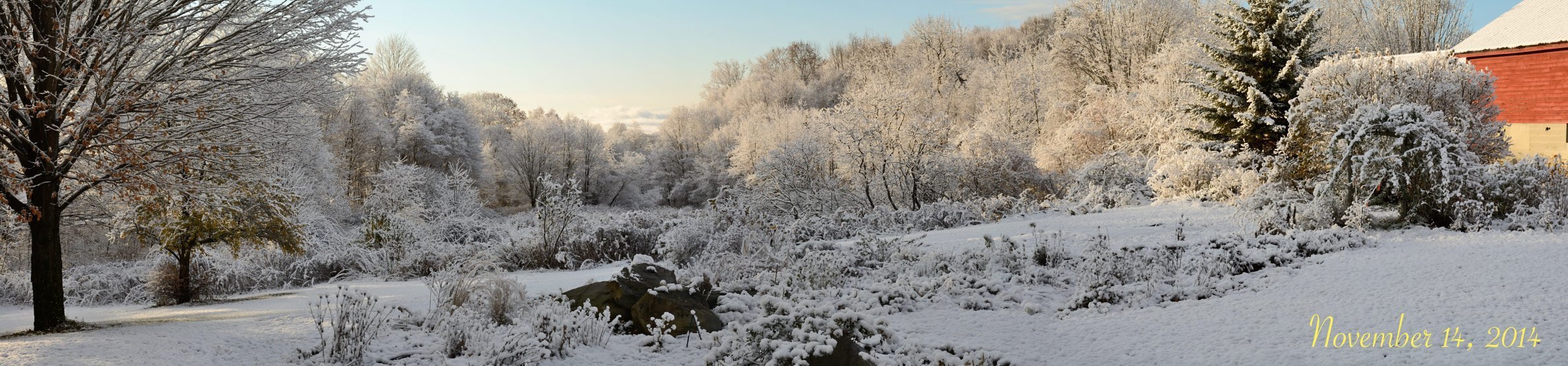 [Click here to see a panorama of Jacqueline's garden under the first snow of the season]
